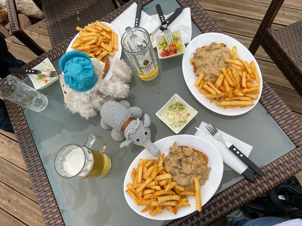 Irgendwann kamen meine Nachbarn zurück….er sah erfrischt aus, sie genervt. Ich winke mit der Schnapsflasche. – er nahm dankbar an, sie verschwand im Wohnmobil. Er erzähle das mit den Duschmünzen hätte Sie nicht verstanden und 2x die Münze falsch eingeworfen , jetzt würde sie im Wohnmobil duschen….ok kann ja mal passieren.